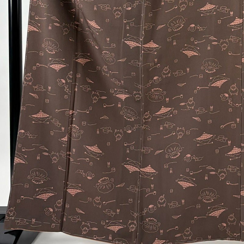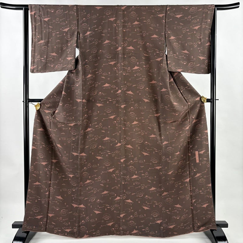 【小紋】 茶系 焦茶色 秀品 B 約160cm~約169cm 裄丈63cm-64cm (M)size 袖丈49cm 4000-7980 二万以下
