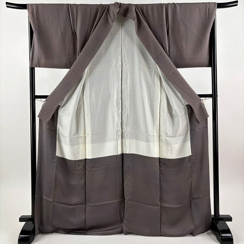 【小紋】 茶系 茶紫 秀品 A 約160cm~約169cm 裄丈66cm (M)size 袖丈47cm 7990-9980 美品 二万以下