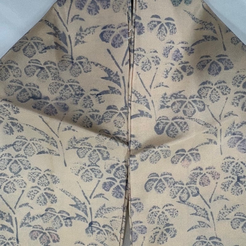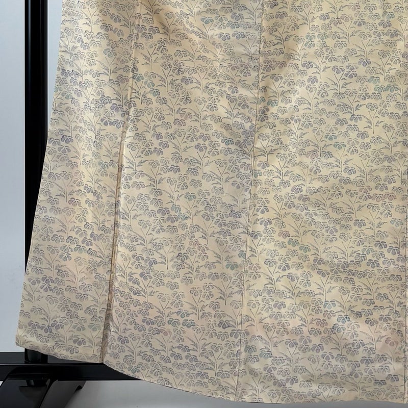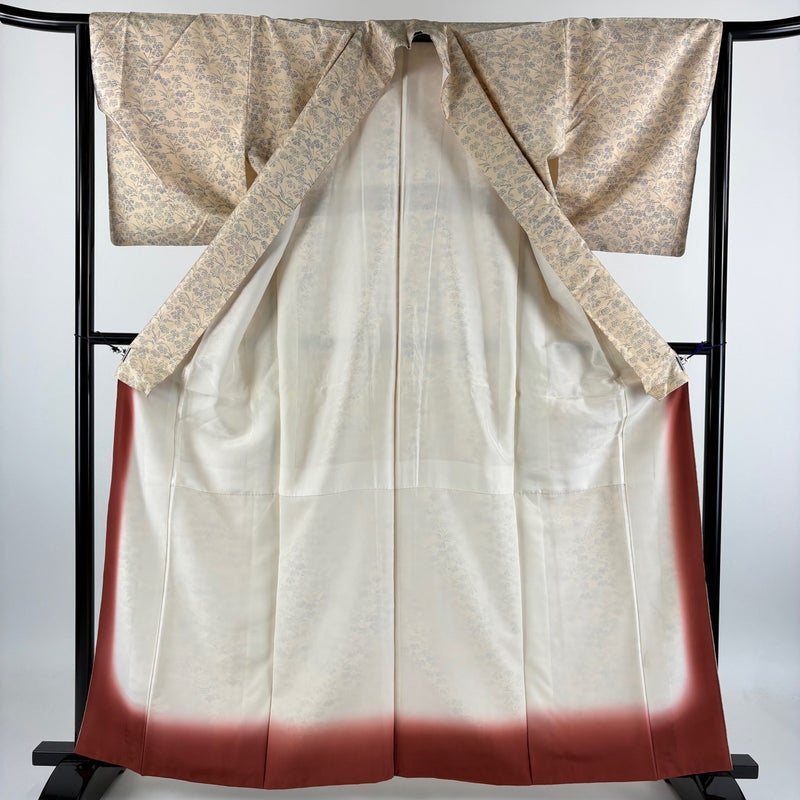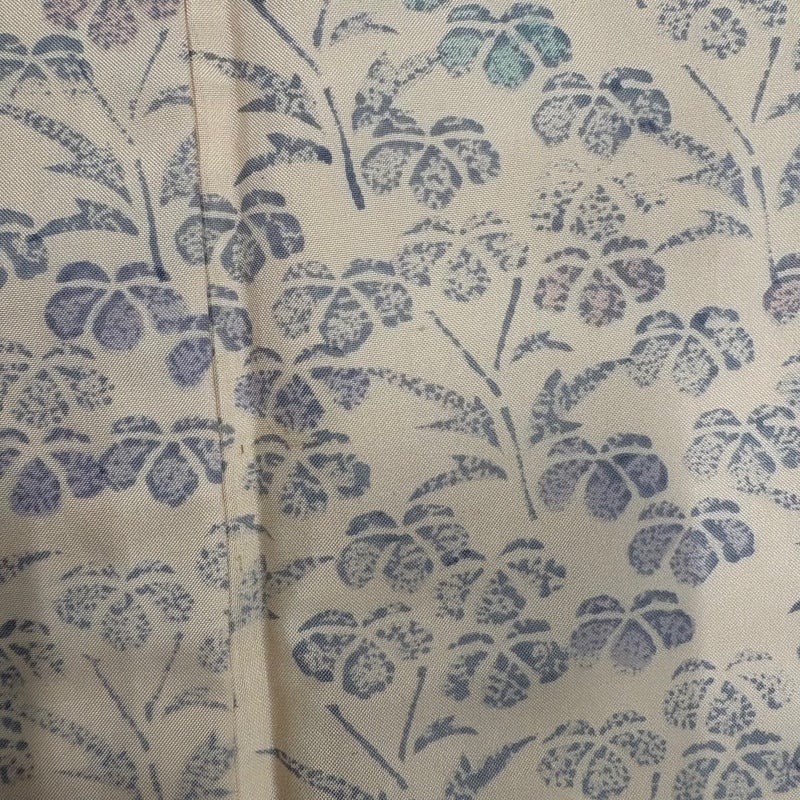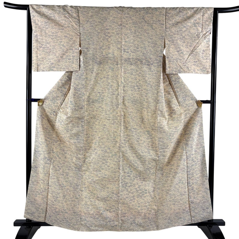 【着物ランク】秀品 【素材】正絹 【身丈】約161cm 【裄丈】約64cm 【袖丈】約48cm 【袖幅】約34cm 【前幅】約25.5cm 【後幅】約29cm 【サイズ】M 【着物仕立て】袷 【着用時期】10~5月 【状態ランク】ランクB 【着物着用シーン】気軽なパーティー、観劇、食事会、正月、気軽なお茶会、街着