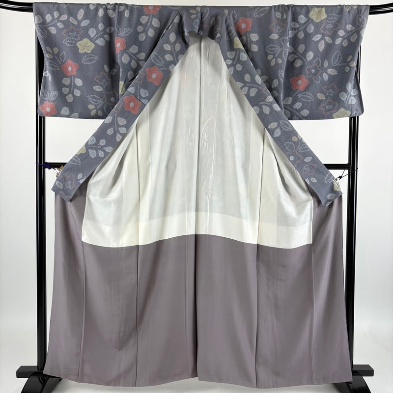 【着物ランク】秀品 【素材】正絹 【身丈】約161cm 【裄丈】約69.5cm 【袖丈】約47.5cm 【袖幅】約35cm 【前幅】約25cm 【後幅】約30cm 【サイズ】L 【着物仕立て】袷 【着用時期】10~5月 【状態ランク】ランクC 【着物着用シーン】気軽なパーティー、観劇、食事会、正月、気軽なお茶会、街着