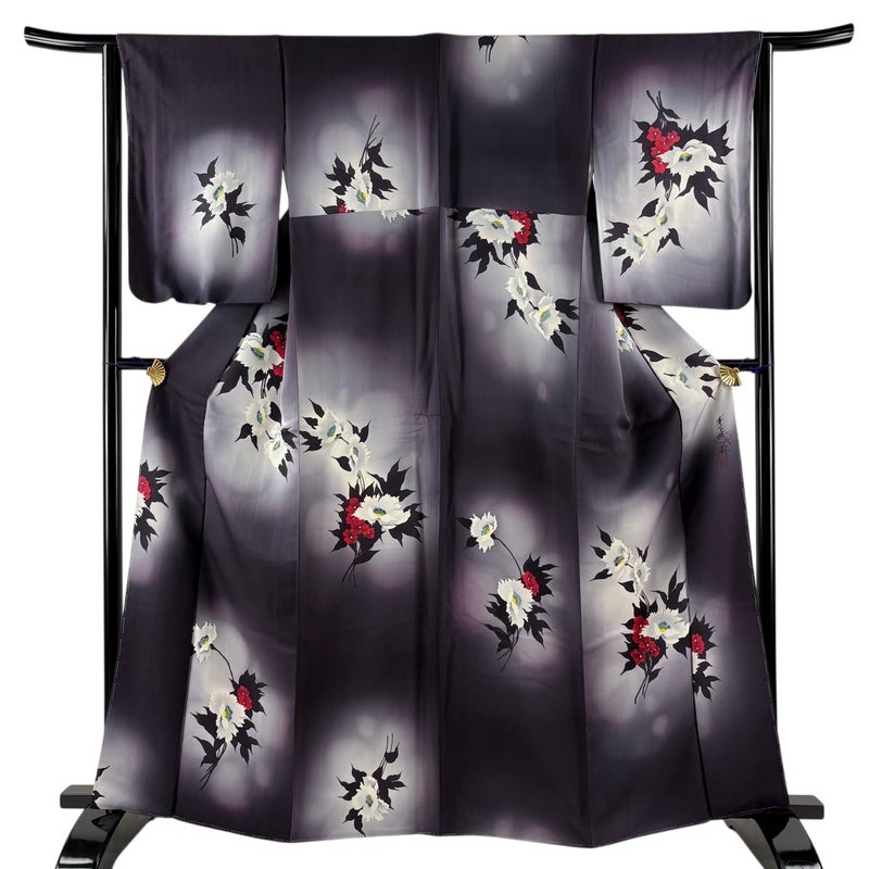 【着物ランク】秀品 【素材】正絹 【身丈】約164.5cm 【裄丈】約63.5cm 【袖丈】約57cm 【袖幅】約32cm 【前幅】約24.5cm 【後幅】約30cm 【サイズ】S 【着物仕立て】袷 【着用時期】10~5月 【状態ランク】ランクA 【着物着用シーン】気軽なパーティー、観劇、食事会、正月、気軽なお茶会、街着