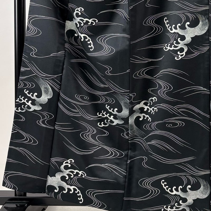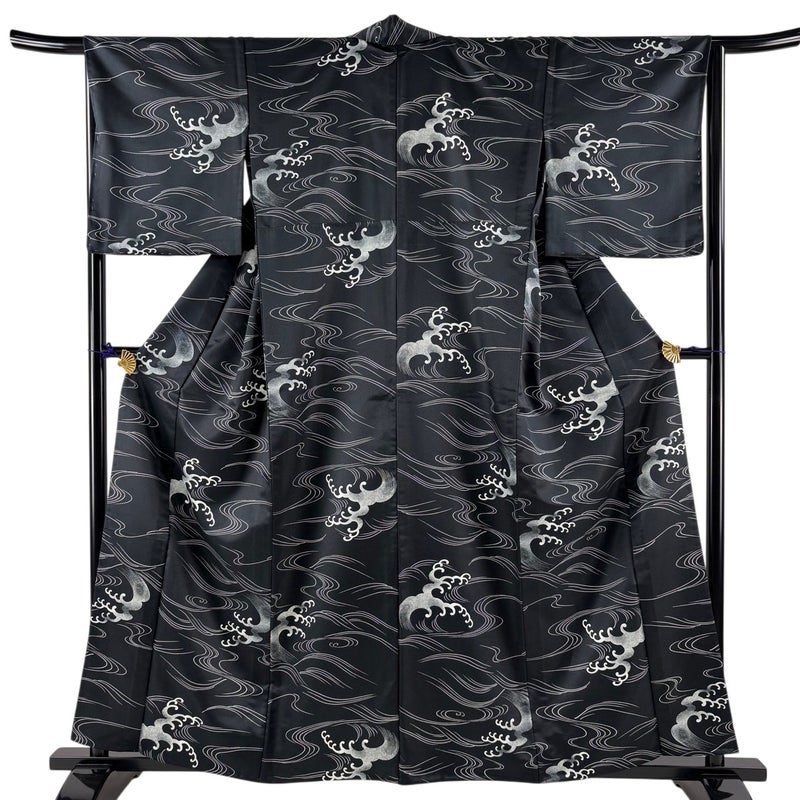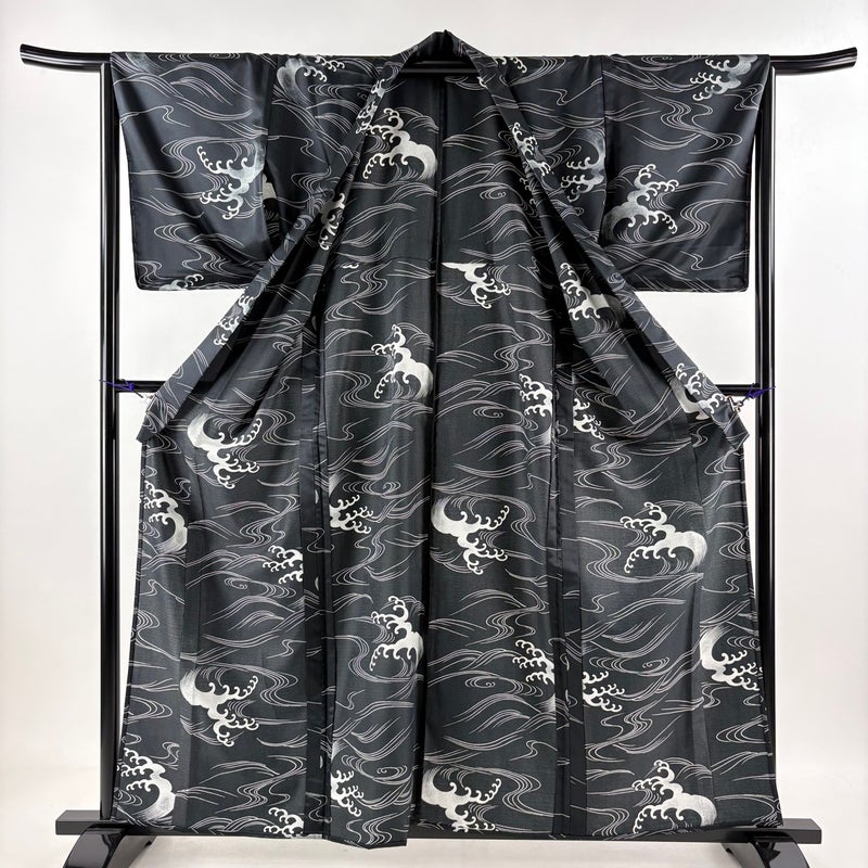 【小紋】 黒系 黒 秀品 A 約150cm~約159cm 裄丈65cm (M)size 袖丈48cm 9990-29990 美品 二万以下
