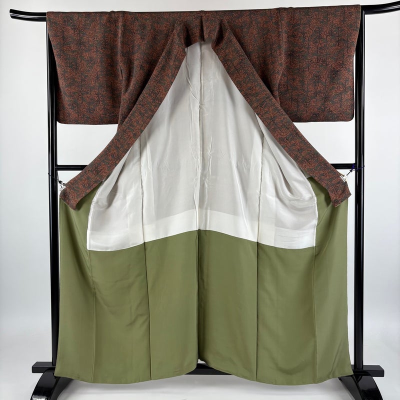 【小紋】 赤系 小豆色 秀品 B 約160cm~約169cm 裄丈66cm (M)size 袖丈48cm 4000-7980 二万以下