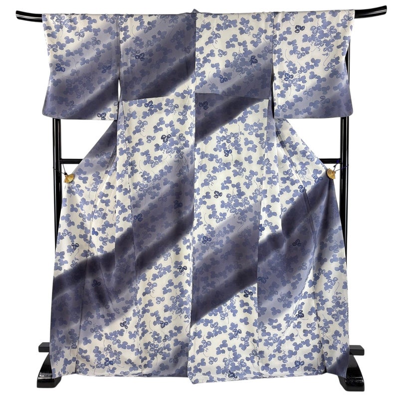 【小紋】 灰色系 青灰色 秀品 A 約160cm~約169cm 裄丈69cm以上 (L)size 袖丈49cm 7990-9980 美品 二万以下