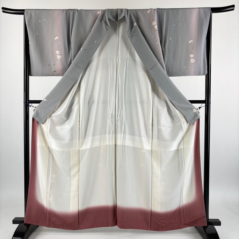 【着物ランク】秀品 【素材】正絹 【身丈】約161cm 【裄丈】約66cm 【袖丈】約49cm 【袖幅】約34cm 【前幅】約25cm 【後幅】約30.5cm 【サイズ】M 【着物仕立て】袷 【着用時期】10~5月 【状態ランク】ランクB 【着物着用シーン】気軽なパーティー、観劇、食事会、正月、気軽なお茶会、街着