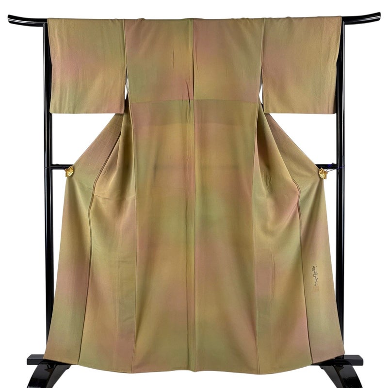 【着物ランク】秀品 【素材】正絹 【身丈】約160cm 【裄丈】約66.5cm 【袖丈】約44.5cm 【袖幅】約34cm 【前幅】約24.5cm 【後幅】約29.5cm 【サイズ】M 【着物仕立て】袷 【着用時期】10~5月 【状態ランク】ランクB 【作家名】斉藤三才 【着物着用シーン】気軽なパーティー、観劇、食事会、正月、気軽なお茶会、街着