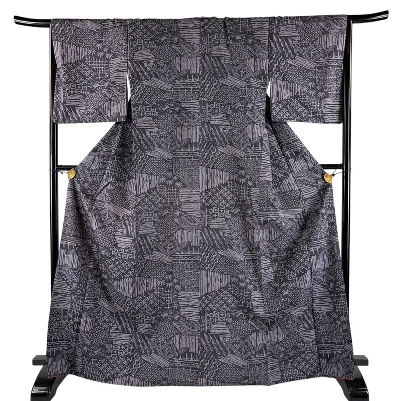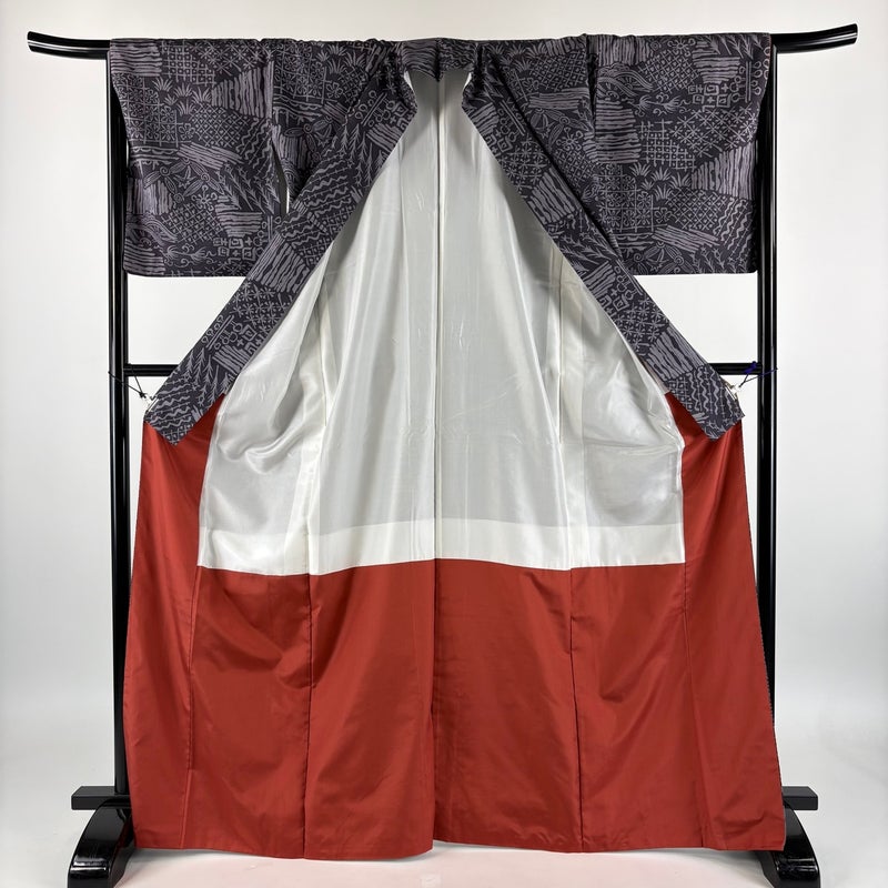 【着物ランク】秀品 【素材】正絹 【身丈】約168cm 【裄丈】約67cm 【袖丈】約48.5cm 【袖幅】約34cm 【前幅】約25cm 【後幅】約31cm 【サイズ】M 【着物仕立て】袷 【着用時期】10~5月 【状態ランク】ランクA 【着物着用シーン】気軽なパーティー、観劇、食事会、正月、気軽なお茶会、街着