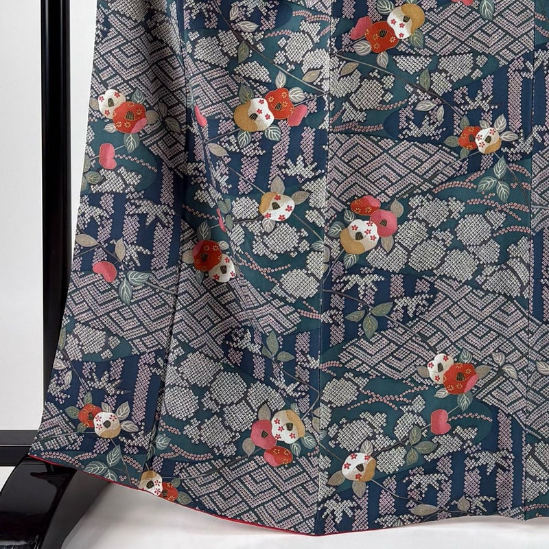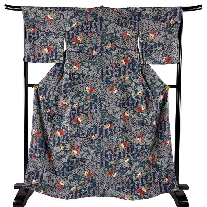 【着物ランク】秀品 【素材】正絹 【身丈】約164cm 【裄丈】約67cm 【袖丈】約49cm 【袖幅】約34cm 【前幅】約24.5cm 【後幅】約28.5cm 【サイズ】M 【着物仕立て】袷 【着用時期】10~5月 【状態ランク】ランクA 【着物着用シーン】気軽なパーティー、観劇、食事会、正月、気軽なお茶会、街着