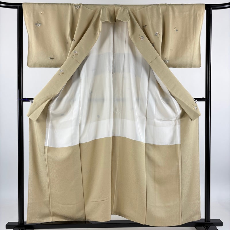 【小紋】 白系 ベージュ 秀品 A 約150cm~約159cm 裄丈62cm以下 (S)size 袖丈46cm以下 7990-9980 美品 二万以下