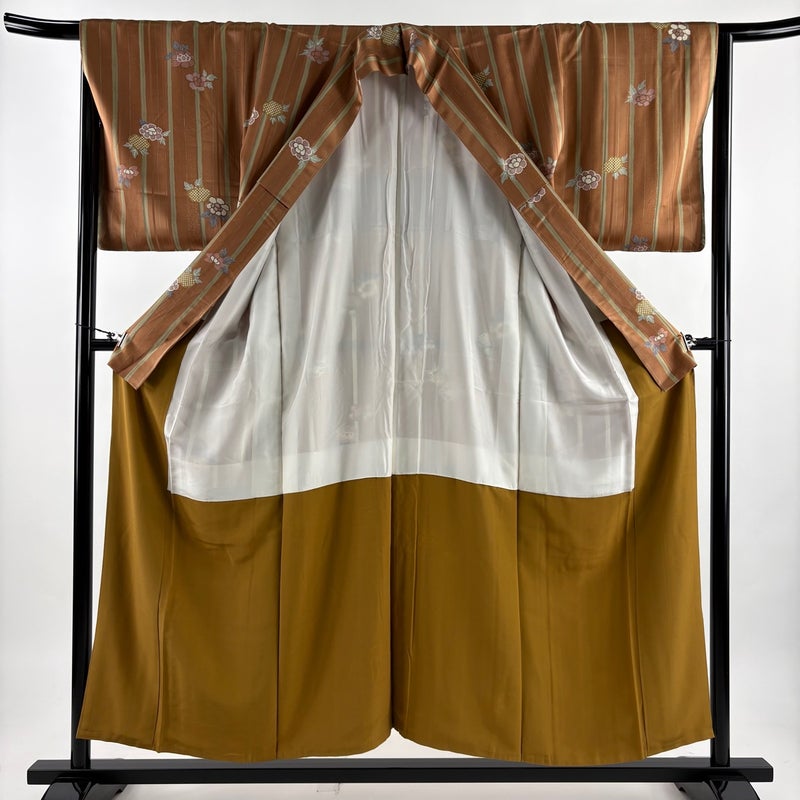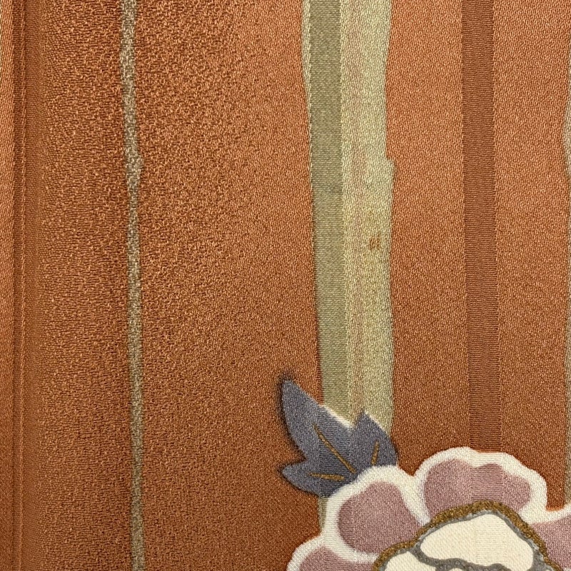【着物ランク】秀品 【素材】正絹 【身丈】約155cm 【裄丈】約65cm 【袖丈】約47.5cm 【袖幅】約34cm 【前幅】約25.5cm 【後幅】約30.5cm 【サイズ】M 【着物仕立て】袷 【着用時期】10~5月 【状態ランク】ランクB 【着物着用シーン】気軽なパーティー、観劇、食事会、正月、気軽なお茶会、街着