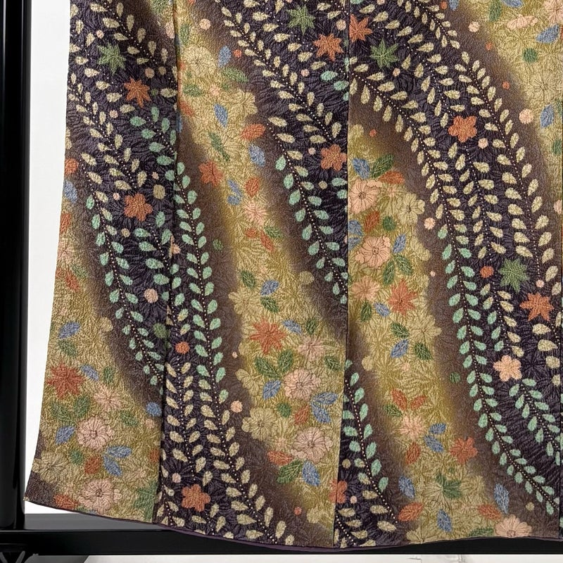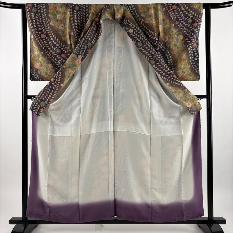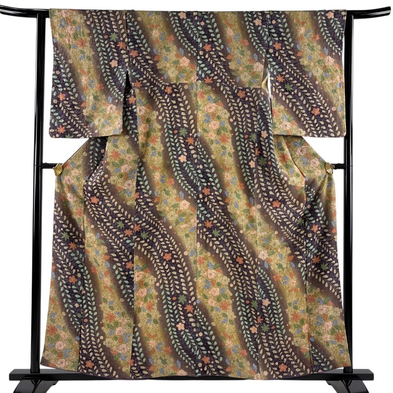 【着物ランク】秀品 【素材】正絹 【身丈】約159cm 【裄丈】約63cm 【袖丈】約57cm 【袖幅】約32.5cm 【前幅】約22.5cm 【後幅】約28cm 【サイズ】S 【着物仕立て】袷 【着用時期】10~5月 【状態ランク】ランクB 【着物着用シーン】気軽なパーティー、観劇、食事会、正月、気軽なお茶会、街着