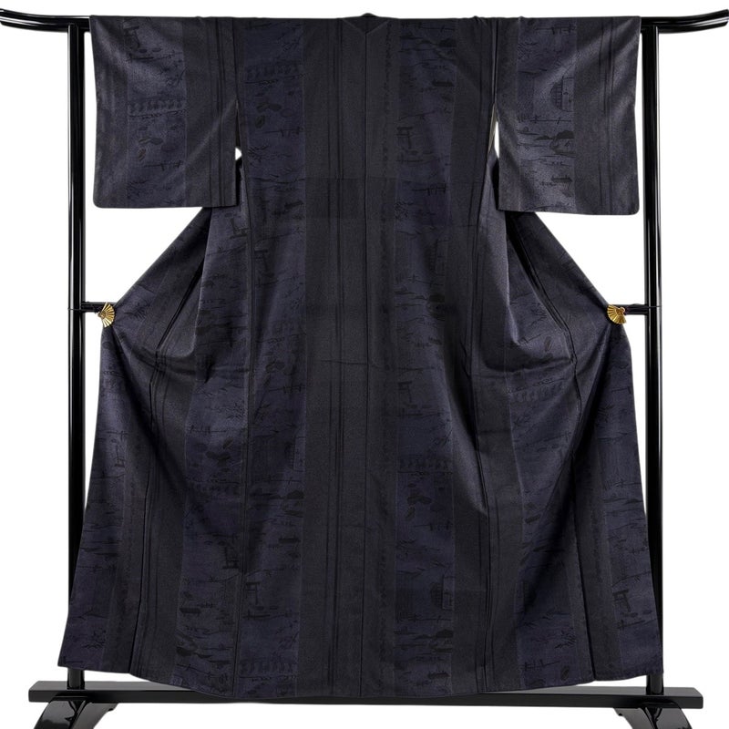 【着物ランク】秀品 【素材】正絹 【身丈】約158cm 【裄丈】約62.5cm 【袖丈】約47cm 【袖幅】約32.5cm 【前幅】約25cm 【後幅】約28.5cm 【サイズ】S 【着物仕立て】袷 【着用時期】10~5月 【状態ランク】ランクB 【着物着用シーン】気軽なパーティー、観劇、食事会、正月、気軽なお茶会、街着