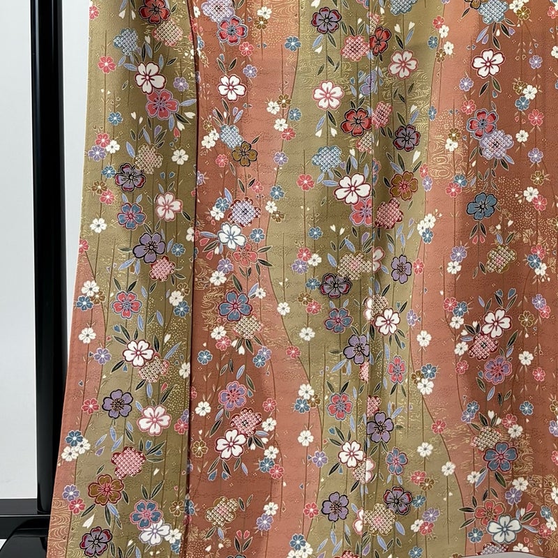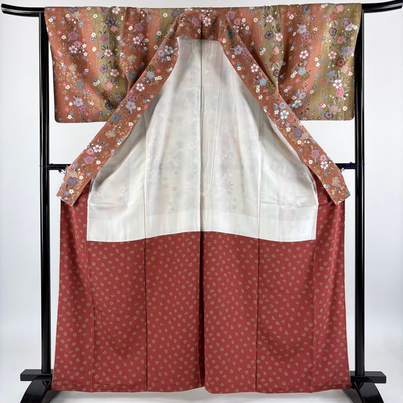 【着物ランク】秀品 【素材】正絹 【身丈】約164cm 【裄丈】約65.5cm 【袖丈】約49cm 【袖幅】約34cm 【前幅】約24cm 【後幅】約29.5cm 【サイズ】M 【着物仕立て】袷 【着用時期】10~5月 【状態ランク】ランクA 【着物着用シーン】気軽なパーティー、観劇、食事会、正月、気軽なお茶会、街着