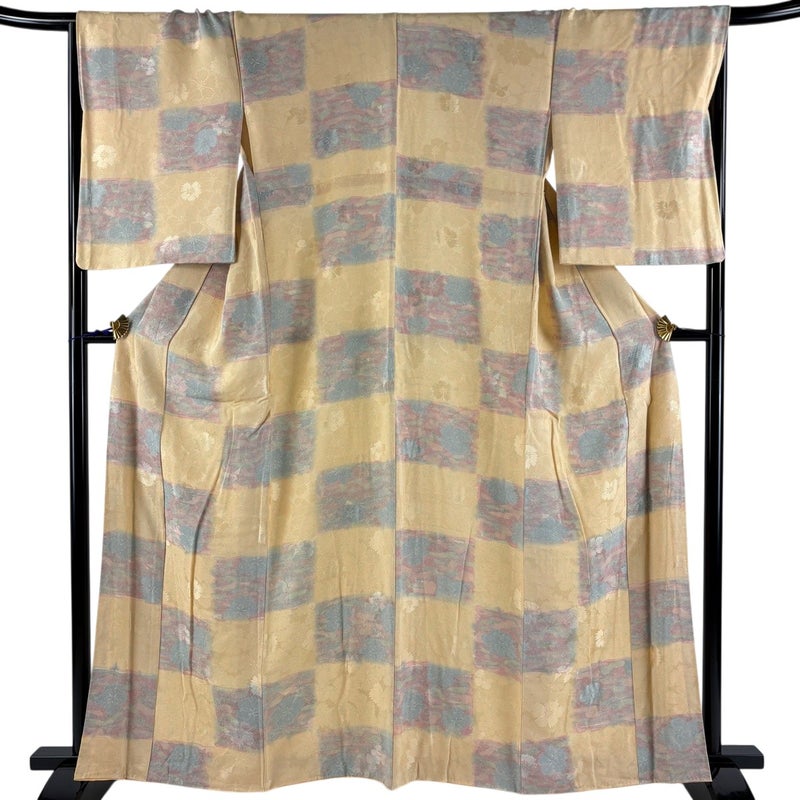 【着物ランク】秀品 【素材】正絹 【身丈】約162cm 【裄丈】約67.5cm 【袖丈】約54cm 【袖幅】約34cm 【前幅】約24.5cm 【後幅】約30cm 【サイズ】L 【着物仕立て】袷 【着用時期】10~5月 【状態ランク】ランクA 【着物着用シーン】気軽なパーティー、観劇、食事会、正月、気軽なお茶会、街着