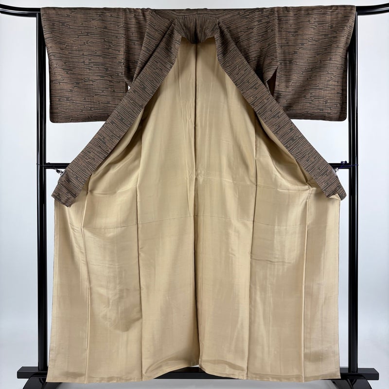 【小紋】 茶系 焦茶色 秀品 A 約160cm~約169cm 裄丈66cm (M)size 袖丈49cm 7990-9980 美品 二万以下