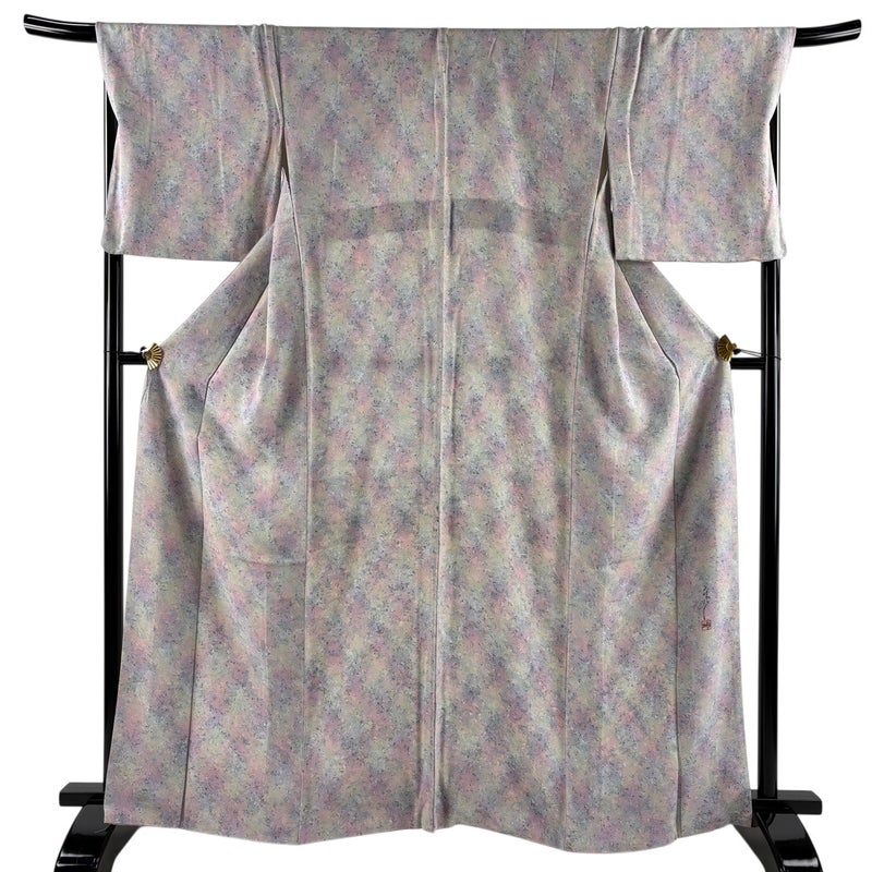 【小紋】 灰色系 灰色 名品 A 約160cm~約169cm 裄丈69cm以上 (L)size 袖丈48cm 9990-29990 美品 二万以下