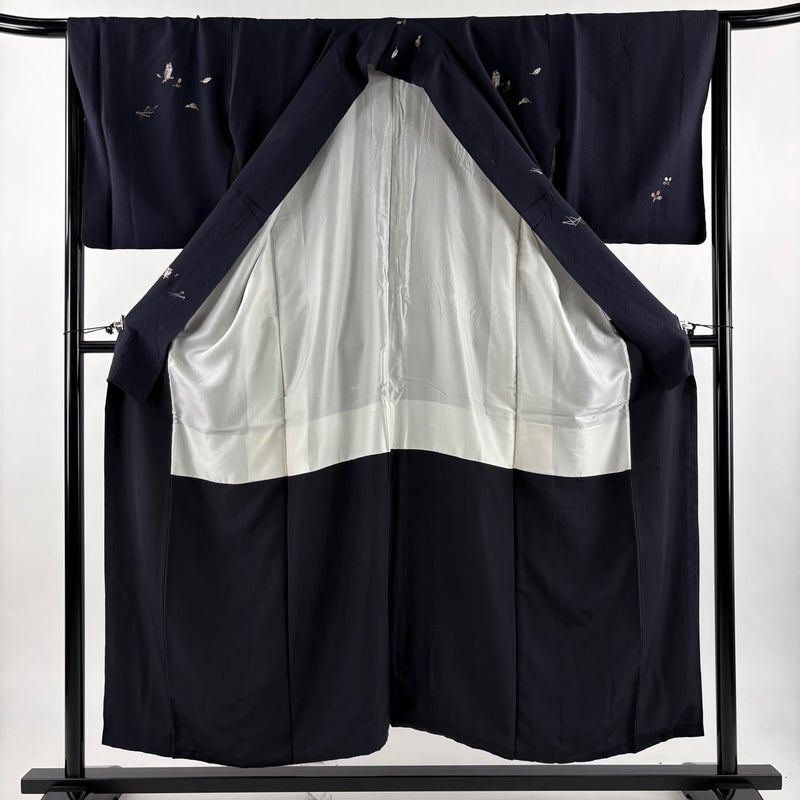 【着物ランク】名品 【素材】正絹 【身丈】約153cm 【裄丈】約66cm 【袖丈】約48cm 【袖幅】約34cm 【前幅】約25cm 【後幅】約29.5cm 【サイズ】M 【着物仕立て】袷 【着用時期】10~5月 【状態ランク】ランクC 【着物着用シーン】気軽なパーティー、観劇、食事会、正月、気軽なお茶会、街着