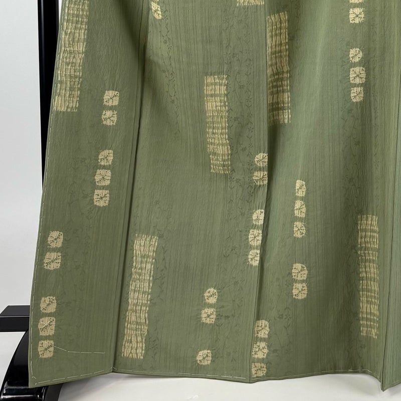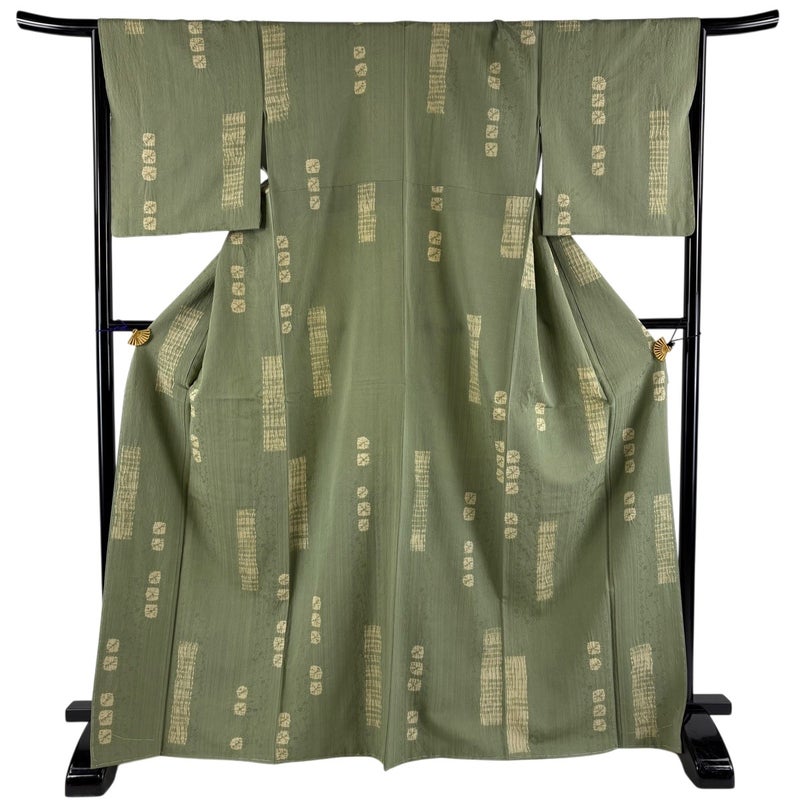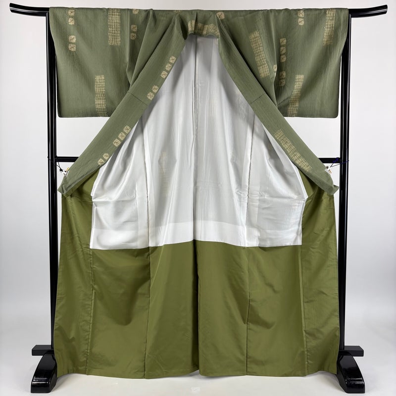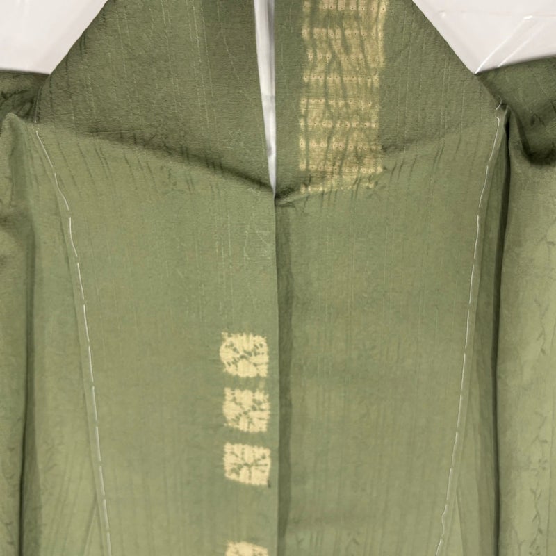 【小紋】 緑系 よもぎ色 名品 B 約160cm~約169cm 裄丈65cm (M)size 袖丈48cm 9990-29990 二万以下