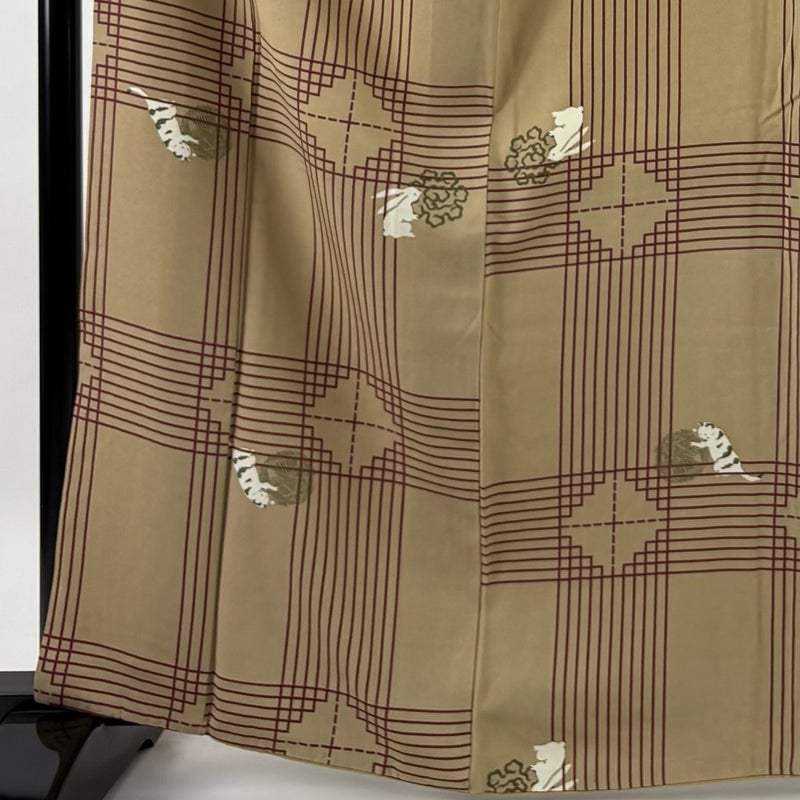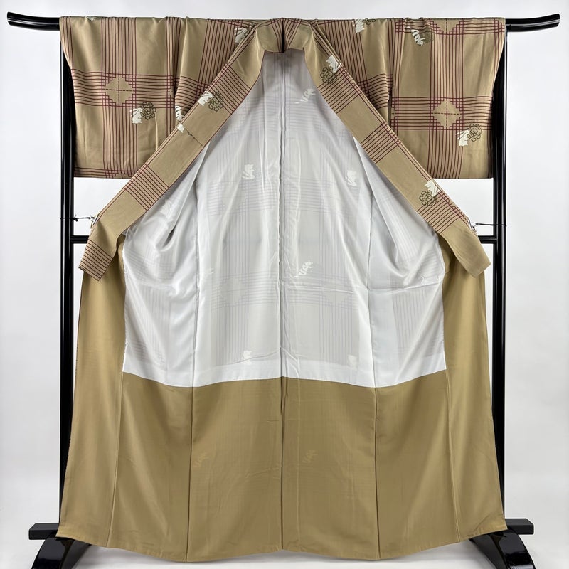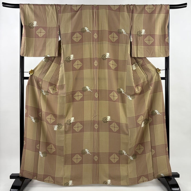 【小紋】 茶系 薄茶色 名品 A 約160cm~約169cm 裄丈67cm-68cm (L)size 袖丈49cm 9990-29990 美品 二万以下