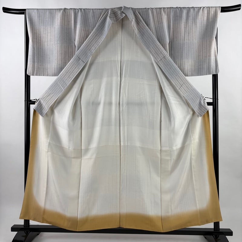 【着物ランク】名品 【素材】正絹 【身丈】約156cm 【裄丈】約68cm 【袖丈】約48.5cm 【袖幅】約34.5cm 【前幅】約26cm 【後幅】約30.5cm 【サイズ】L 【着物仕立て】袷 【着用時期】10~5月 【状態ランク】ランクC 【着物着用シーン】気軽なパーティー、観劇、食事会、正月、気軽なお茶会、街着