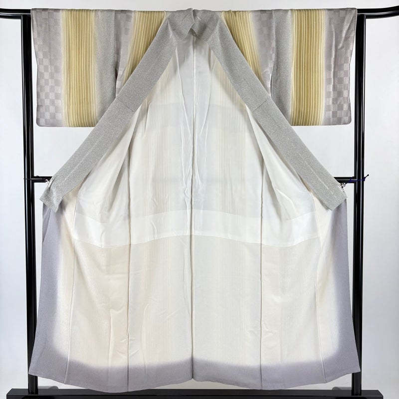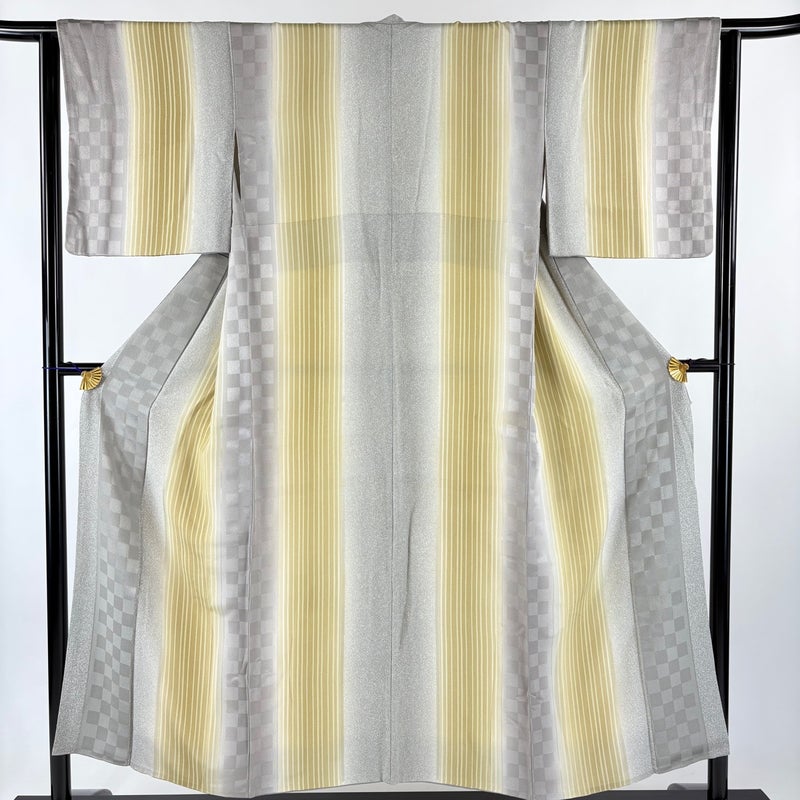 【着物ランク】秀品 【素材】正絹 【身丈】約152.5cm 【裄丈】約63.5cm 【袖丈】約46cm 【袖幅】約33cm 【前幅】約26cm 【後幅】約29cm 【サイズ】S 【着物仕立て】袷 【着用時期】10~5月 【状態ランク】ランクB 【着物着用シーン】気軽なパーティー、観劇、食事会、正月、気軽なお茶会、街着