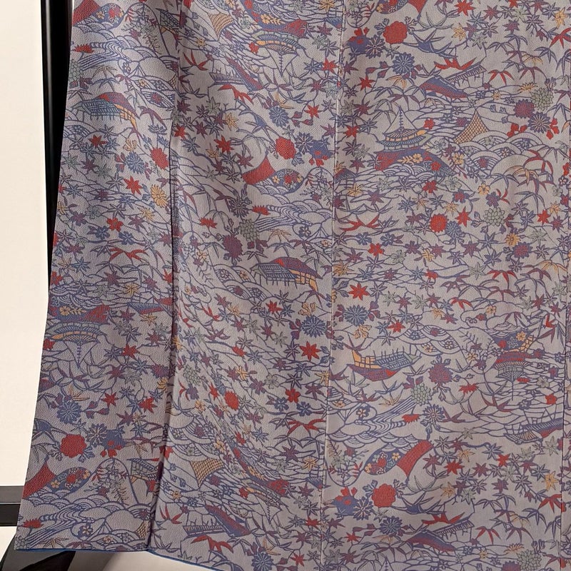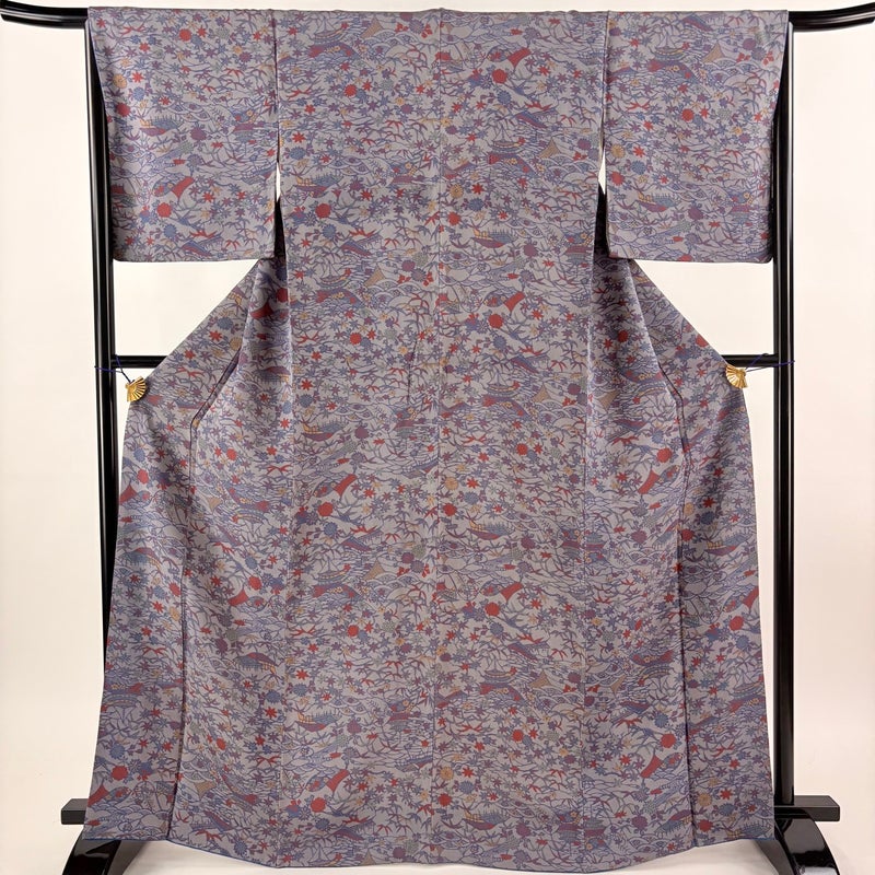 【小紋】 灰色系 灰紫 秀品 B 約160cm~約169cm 裄丈66cm (M)size 袖丈49cm 4000-7980 二万以下