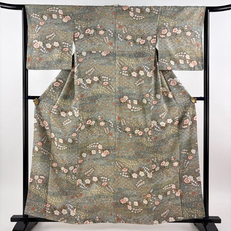 【小紋】 灰色系 灰緑 秀品 C 約160cm~約169cm 裄丈63cm-64cm (S)size 袖丈48cm 4000-7980 二万以下