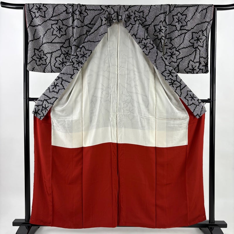 【着物ランク】秀品 【素材】正絹 【身丈】約161cm 【裄丈】約65.5cm 【袖丈】約48cm 【袖幅】約33cm 【前幅】約23cm 【後幅】約28.5cm 【サイズ】M 【着物仕立て】袷 【着用時期】10~5月 【状態ランク】ランクC 【着物着用シーン】気軽なパーティー、観劇、食事会、正月、気軽なお茶会、街着