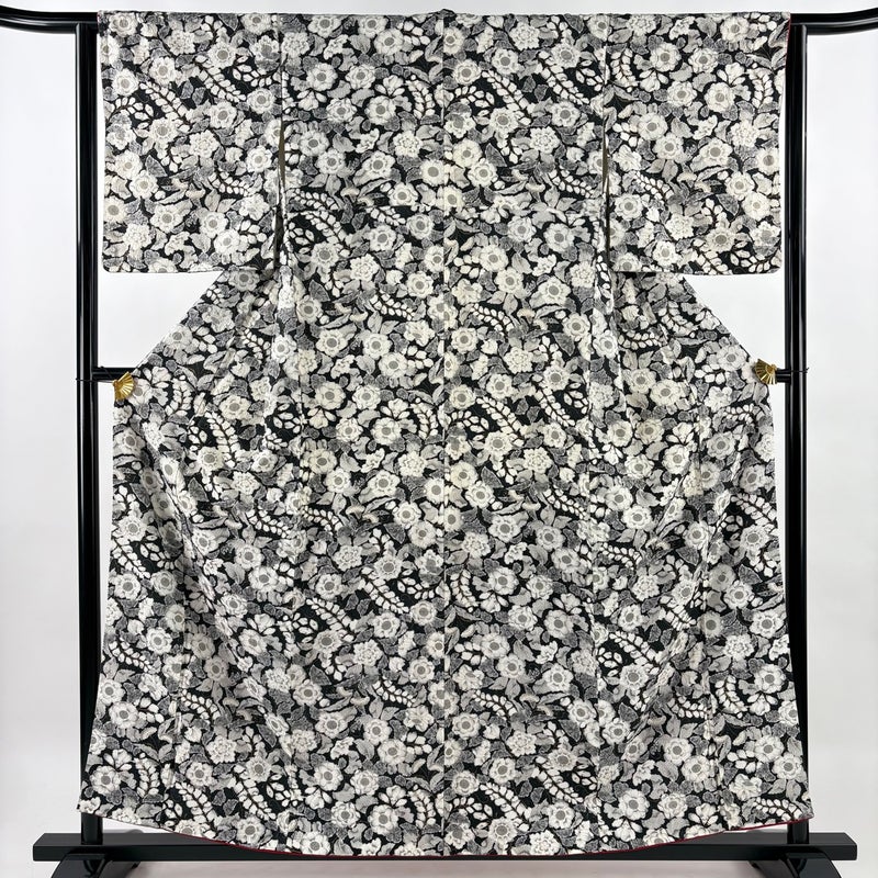【小紋】 黒系 黒 秀品 B 約150cm~約159cm 裄丈63cm-64cm (S)size 袖丈49cm 4000-7980 二万以下