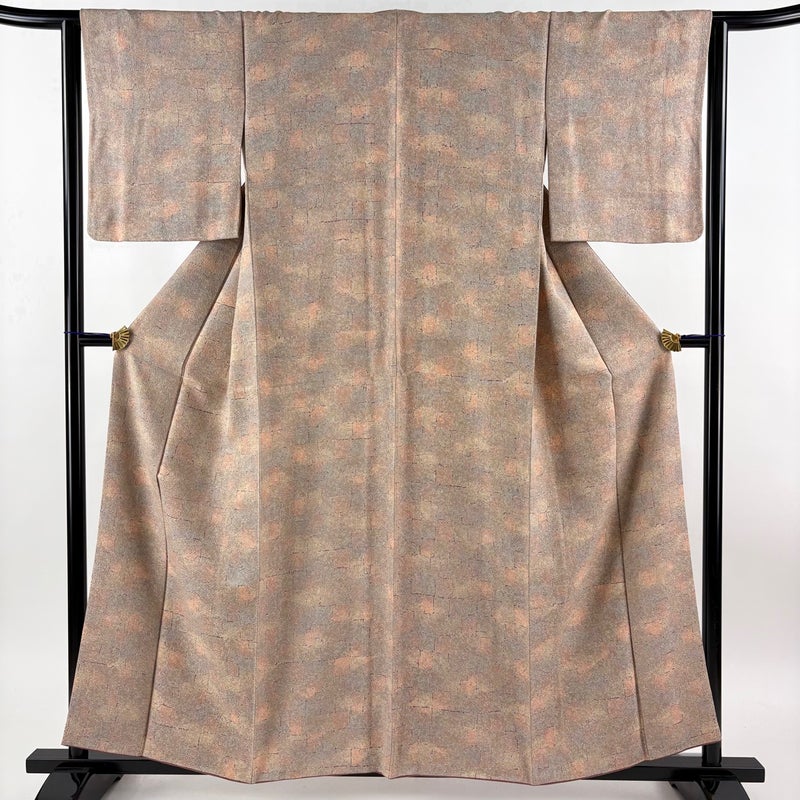 【小紋】 赤系 ピンクベージュ 秀品 A 約150cm~約159cm 裄丈63cm-64cm (S)size 袖丈47cm 7990-9980 美品 二万以下