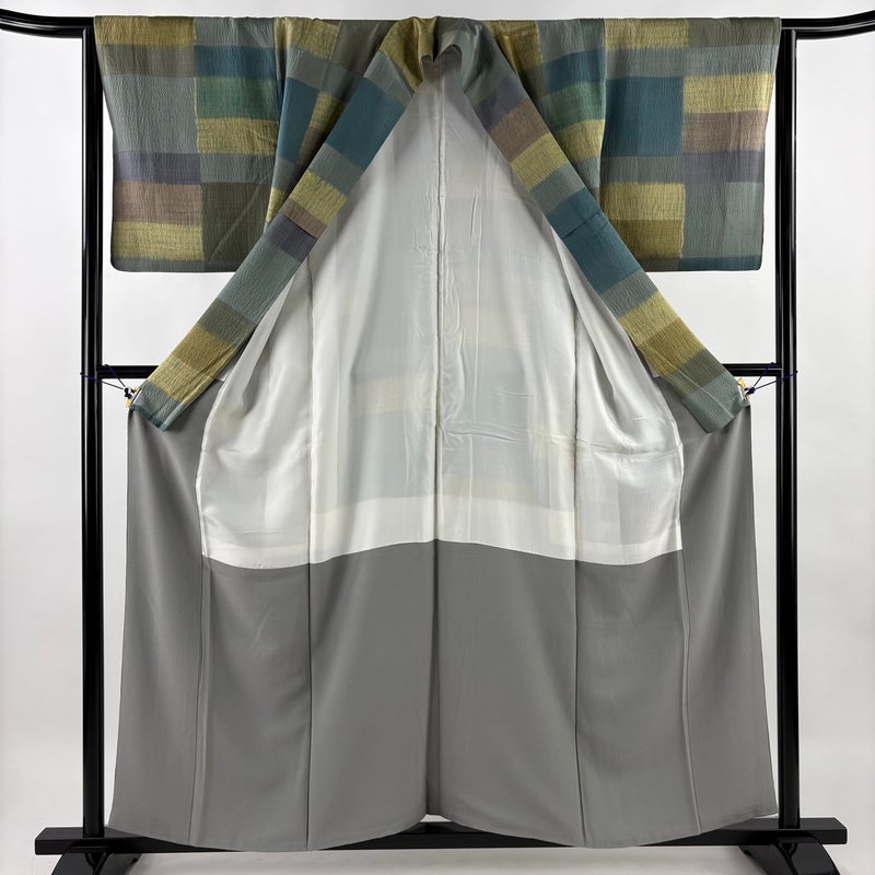 【小紋】 灰色系 灰緑 秀品 A 約150cm~約159cm 裄丈63cm-64cm (M)size 袖丈48cm 7990-9980 美品 二万以下