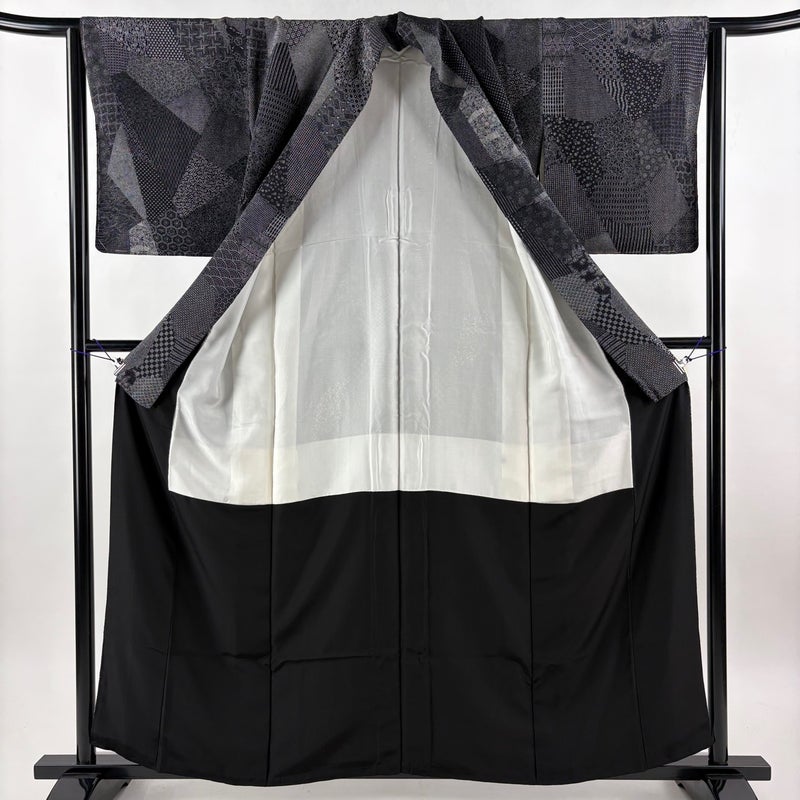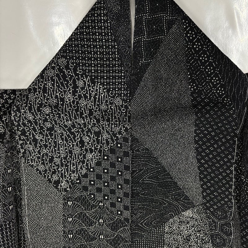 【小紋】 黒系 黒 秀品 A 約150cm~約159cm 裄丈63cm-64cm (M)size 袖丈49cm 7990-9980 美品 二万以下