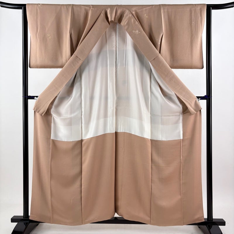 【小紋】 赤系 ピンクベージュ 名品 B 約160cm~約169cm 裄丈63cm-64cm (S)size 袖丈47cm 9990-29990 二万以下