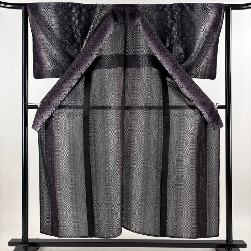 【小紋】 灰色系 黒灰 逸品 A 約150cm~約159cm 裄丈65cm (M)size 袖丈49cm 30000- 美品 五万以下