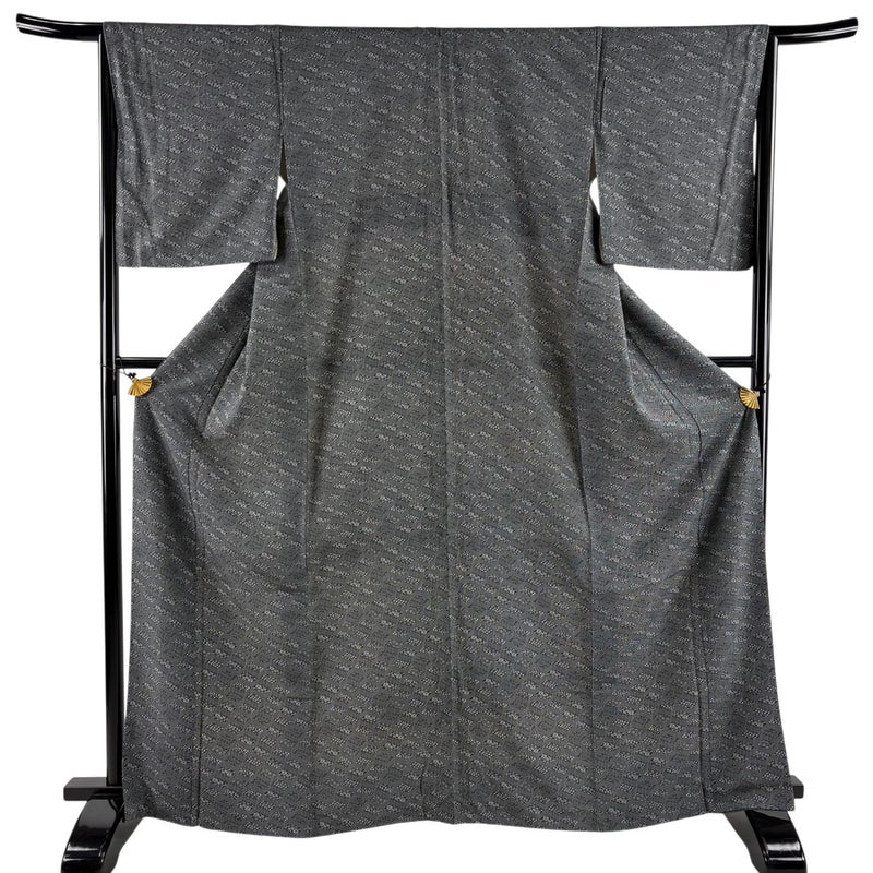【小紋】 灰色系 黒灰 秀品 A 約160cm~約169cm 裄丈65cm (M)size 袖丈49cm 7990-9980 美品 二万以下