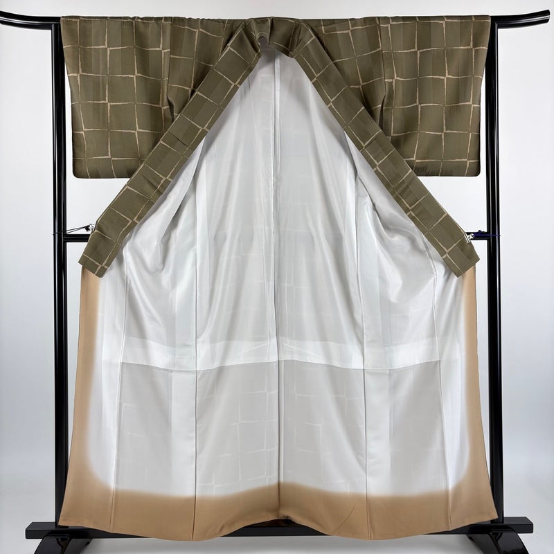 【小紋】 茶系 茶緑色 秀品 A 約150cm~約159cm 裄丈63cm-64cm (M)size 袖丈49cm 7990-9980 美品 二万以下