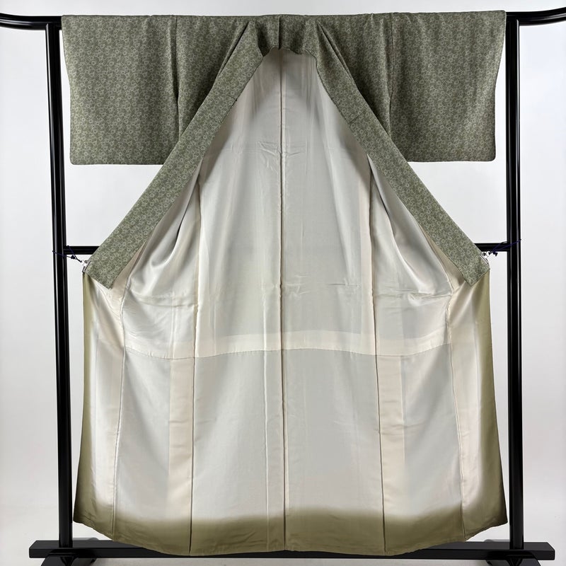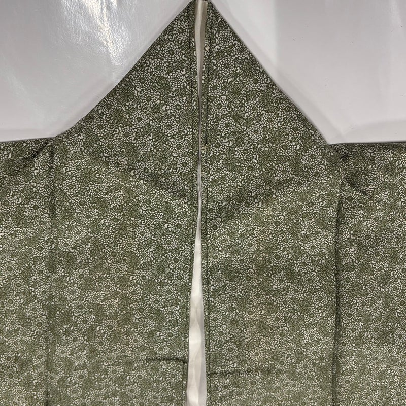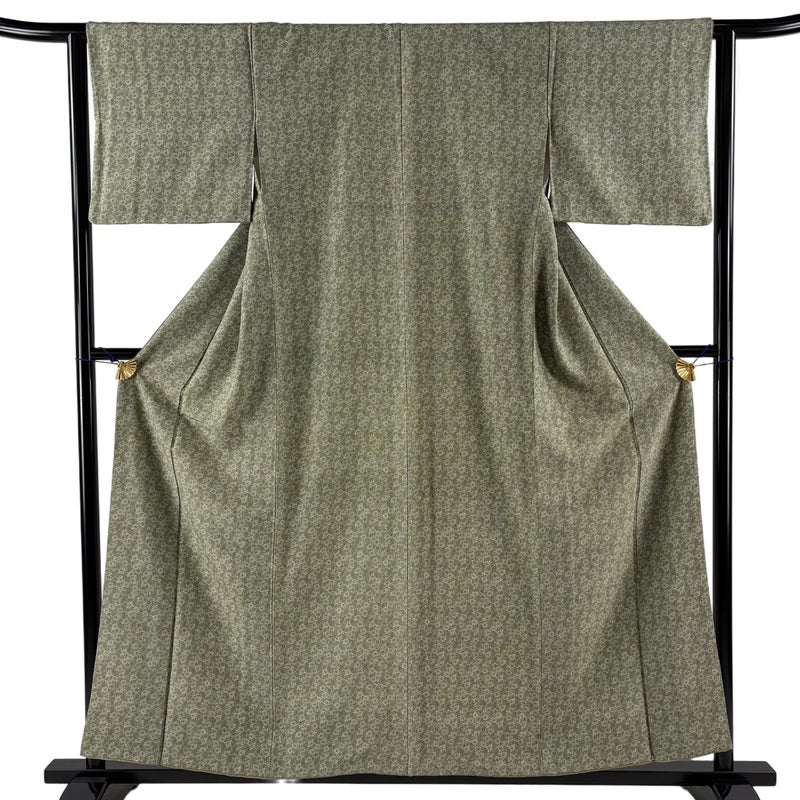 【小紋】 緑系 よもぎ色 秀品 B 約150cm~約159cm 裄丈62cm以下 (S)size 袖丈46cm以下 4000-7980 二万以下