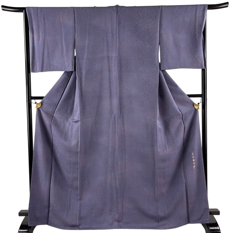 【着物ランク】秀品 【素材】正絹 【身丈】約169cm 【裄丈】約66cm 【袖丈】約49cm 【袖幅】約34.5cm 【前幅】約24.5cm 【後幅】約30.5cm 【サイズ】M 【着物仕立て】袷 【着用時期】10~5月 【状態ランク】ランクA 【着物着用シーン】気軽なパーティー、観劇、食事会、正月、気軽なお茶会、街着