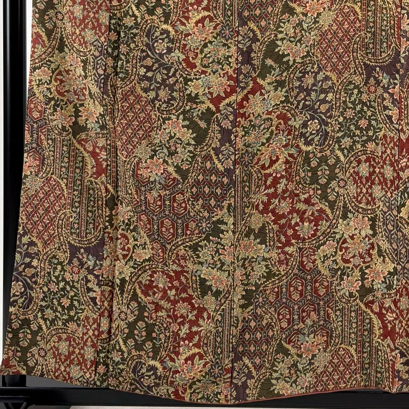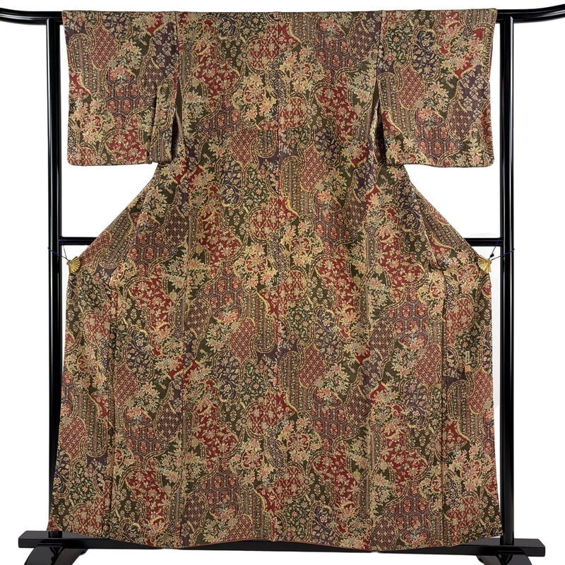 【着物ランク】秀品 【素材】正絹 【身丈】約157cm 【裄丈】約62cm 【袖丈】約47cm 【袖幅】約31.5cm 【前幅】約23.5cm 【後幅】約28cm 【サイズ】S 【着物仕立て】袷 【着用時期】10~5月 【状態ランク】ランクC 【作家名】二代目 更甚 【着物着用シーン】気軽なパーティー、観劇、食事会、正月、気軽なお茶会、街着