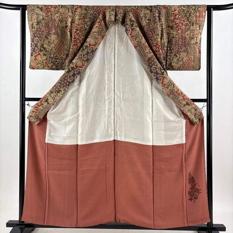 【小紋】 茶系 茶緑色 秀品 C 約150cm~約159cm 裄丈62cm以下 (S)size 袖丈47cm 4000-7980 二万以下