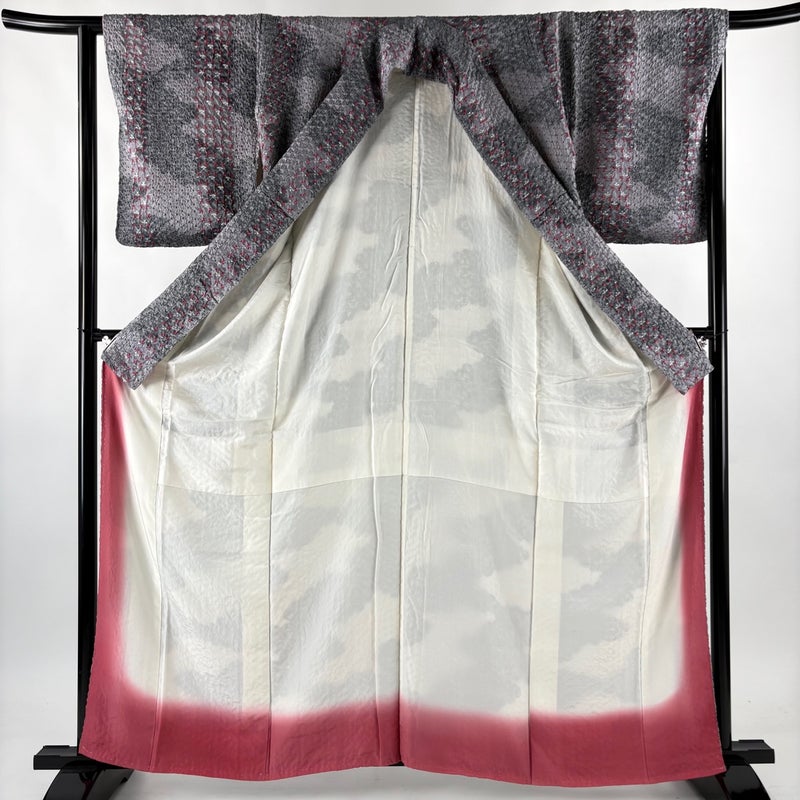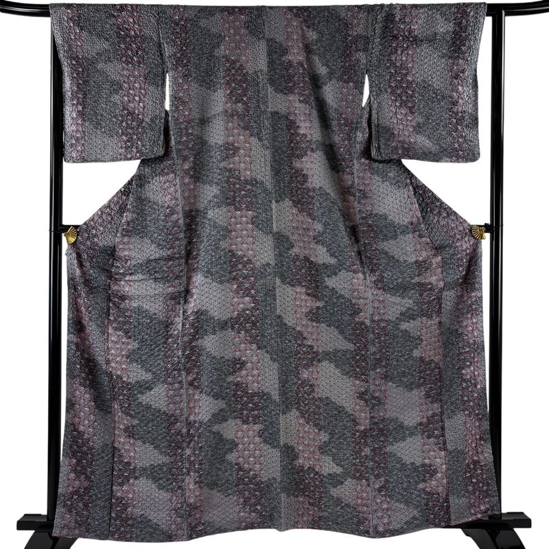 【小紋】 灰色系 灰色 秀品 B 約160cm~約169cm 裄丈65cm (M)size 袖丈50cm-60cm 4000-7980 二万以下
