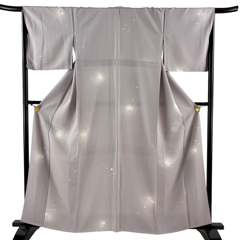 【小紋】 灰色系 灰紫 秀品 A 約160cm~約169cm 裄丈66cm (M)size 袖丈46cm以下 7990-9980 美品 二万以下
