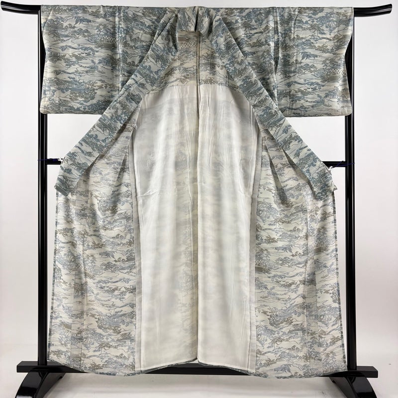 【小紋】 灰色系 灰緑 秀品 A 約150cm~約159cm 裄丈66cm (M)size 袖丈47cm 9990-29990 美品 二万以下
