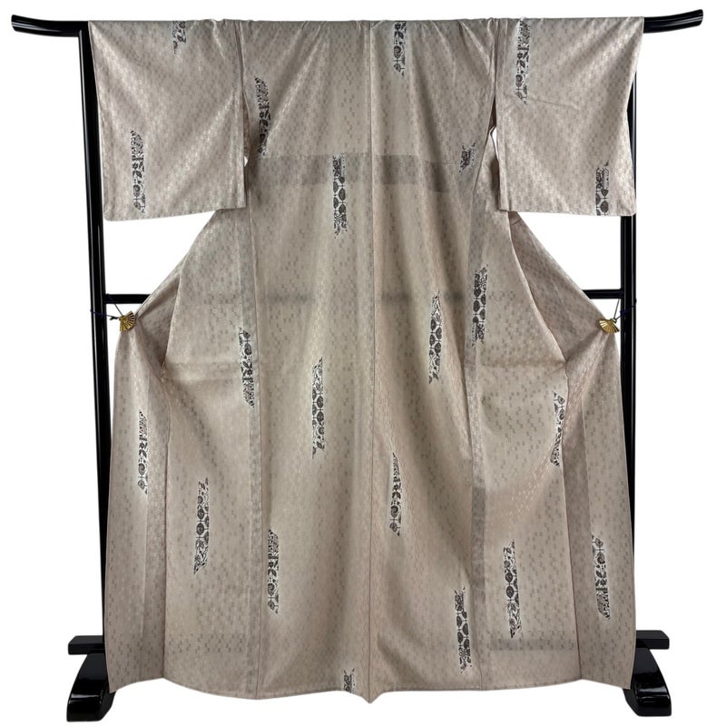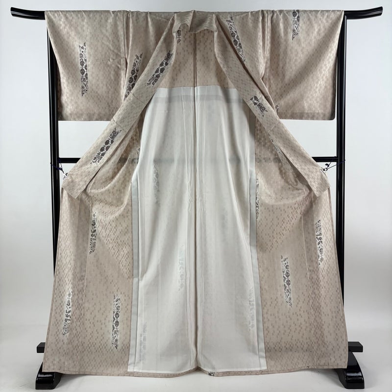 【小紋】 白系 ベージュ 秀品 A 約170cm~約179cm 裄丈67cm-68cm (L)size 袖丈50cm-60cm 9990-29990 美品 二万以下