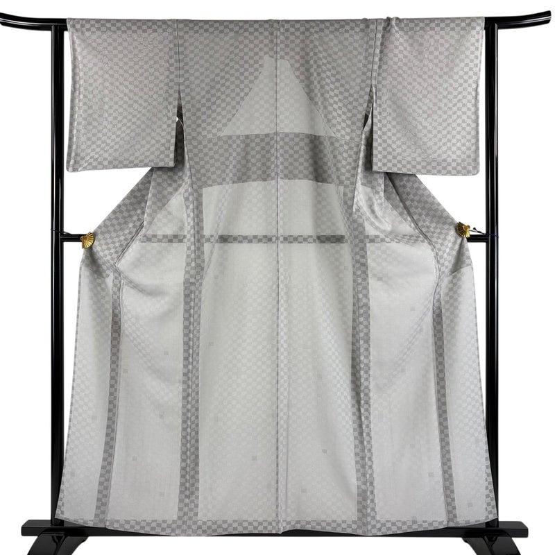 【着物ランク】秀品 【素材】正絹 【身丈】約159cm 【裄丈】約63cm 【袖丈】約49.5cm 【袖幅】約32.5cm 【前幅】約25cm 【後幅】約29cm 【サイズ】S 【着物仕立て】薄物 【着用時期】7~8月 【状態ランク】ランクA 【着物着用シーン】気軽なパーティー、観劇、食事会、正月、気軽なお茶会、街着