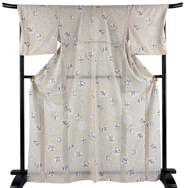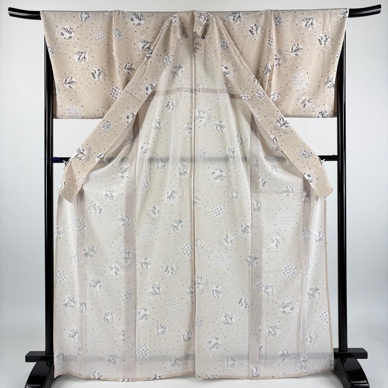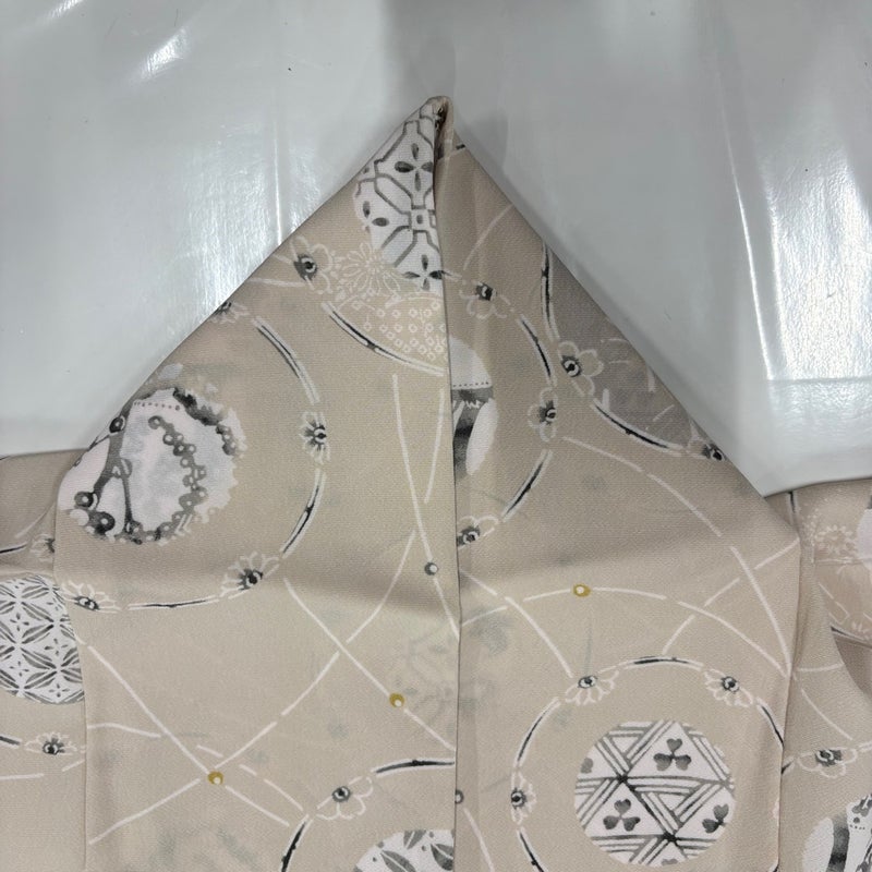 【小紋】 白系 ベージュ 秀品 B 約160cm~約169cm 裄丈69cm以上 (L)size 袖丈49cm 9990-29990 二万以下