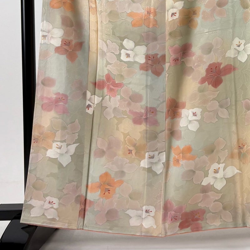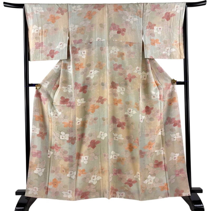 【着物ランク】秀品 【素材】正絹 【身丈】約162cm 【裄丈】約65.5cm 【袖丈】約48cm 【袖幅】約34cm 【前幅】約24.5cm 【後幅】約30.5cm 【サイズ】M 【着物仕立て】袷 【着用時期】10~5月 【状態ランク】ランクA 【着物着用シーン】気軽なパーティー、観劇、食事会、正月、気軽なお茶会、街着