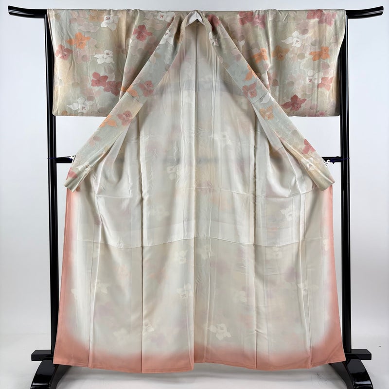 【小紋】 灰色系 灰緑 秀品 A 約160cm~約169cm 裄丈65cm (M)size 袖丈48cm 7990-9980 美品 二万以下