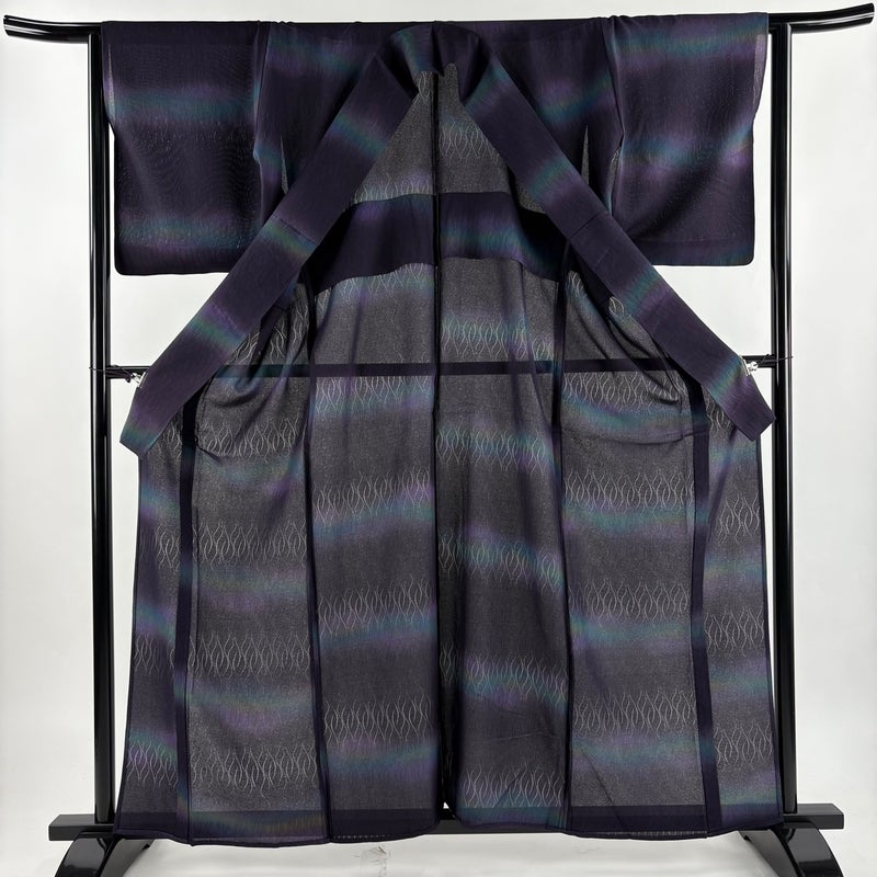 【着物ランク】秀品 【素材】正絹 【身丈】約160.5cm 【裄丈】約63.5cm 【袖丈】約48.5cm 【袖幅】約32.5cm 【前幅】約27.5cm 【後幅】約32cm 【サイズ】S 【着物仕立て】薄物 【着用時期】7~8月 【状態ランク】ランクA 【着物着用シーン】気軽なパーティー、観劇、食事会、正月、気軽なお茶会、街着