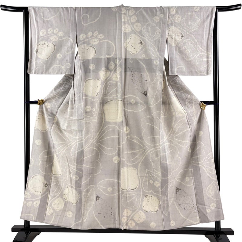 【着物ランク】秀品 【素材】正絹 【身丈】約155.5cm 【裄丈】約64.5cm 【袖丈】約49.5cm 【袖幅】約32cm 【前幅】約25.5cm 【後幅】約30.5cm 【サイズ】M 【着物仕立て】単衣 【着用時期】6/9月 【状態ランク】ランクC 【着物着用シーン】気軽なパーティー、観劇、食事会、正月、気軽なお茶会、街着